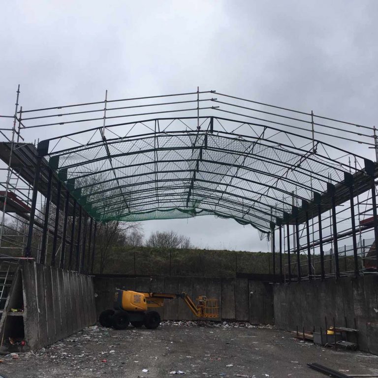This provides more netting below roof level for more security for scaffolders and construction workers.